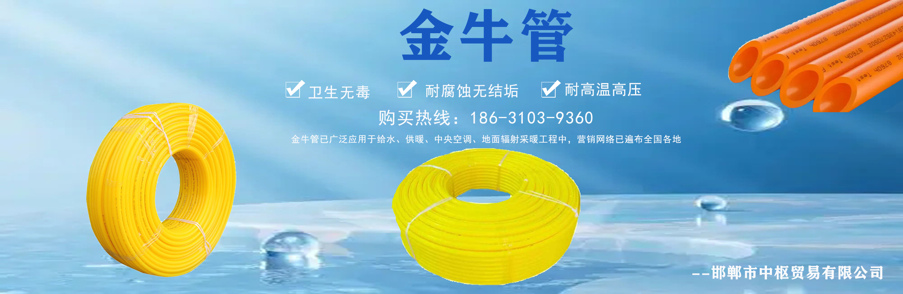 邯鄲市中樞貿易有限公司主營日豐管,日豐管代理,日豐管廠家批發,金牛管,金牛管代理,金牛管廠家批發等,質量可靠,值得信賴! 我公司在產品行業積累了豐富的經驗,具有嚴格的管理制度,同時引進先進的生產設備和生產技術,一如既往的為廣大客戶提供質優價廉的產品。創辦多年來在市場上贏得較好的口碑,銷售網絡覆蓋全國各個省市及地區。 質量為先,信譽為重,管理為本,服務為誠,我們將致力于這一經營理念,關注時代發展,用先進的技術,不斷創新求實,以更優的質量,更好的服務來滿足我們的廣大客戶。 公司理念:勇于進取、開拓創...